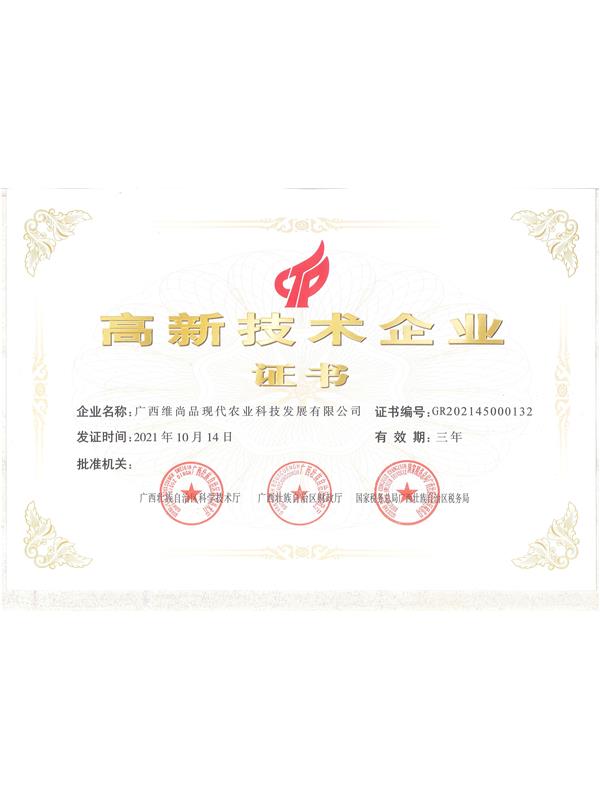 2022年維尚品高新企業(yè)證書(shū)